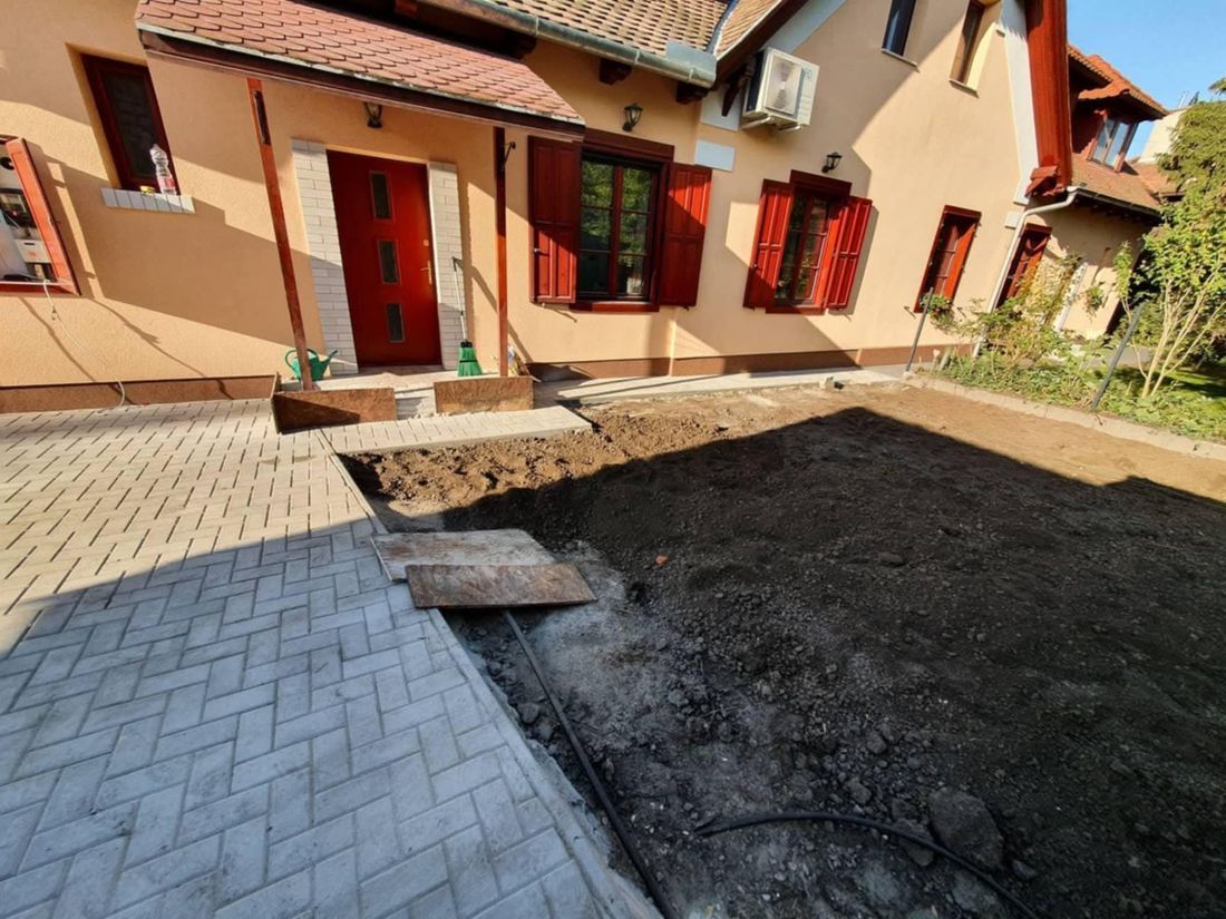Az első lépés a tartós eredmény érdekében a gondos alapozás volt. A régi talajt minőségi földre cseréltük. Az előkészített területre prémium minőségű gyepszőnyeget helyeztünk. Így az üde zöld pázsit tökéletes alapot nyújt a kert további elemeinek megvalósításához.